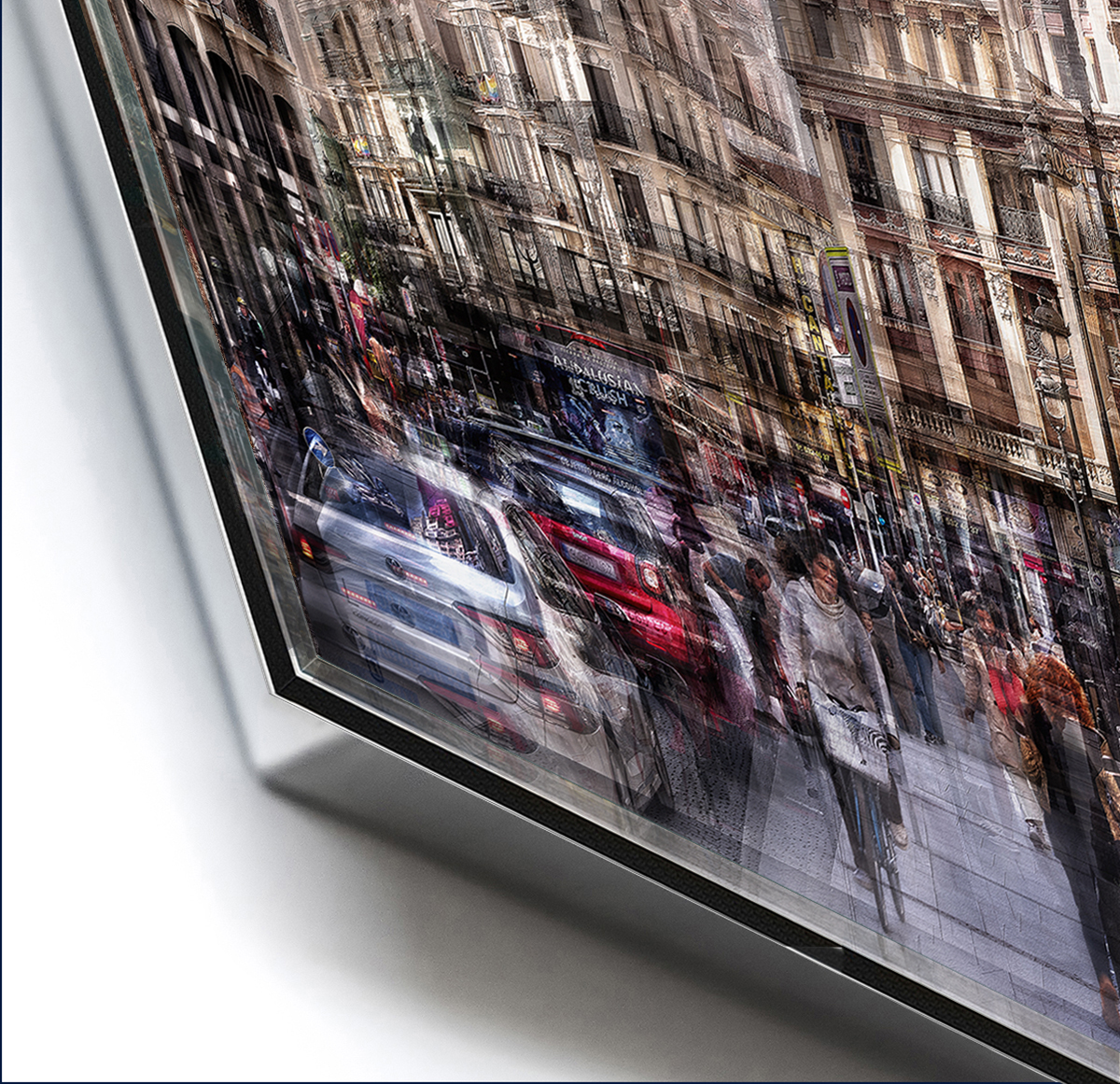 METACRILATO : Papel fine art adhesivado a soporte rígido dibón con frontal de metacrilato y bastidor trasero de aluminio flotante.