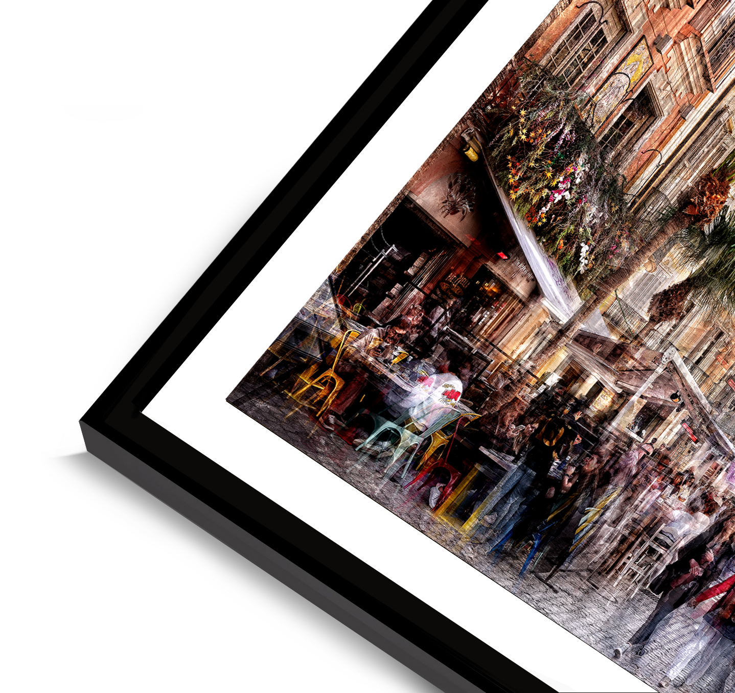 | ACABADOS | Copia impresa Fine Art, Metacrilato con bastidor trasero, Caja Americana en marco negro, Caja Americana en marco mansónia, Caja Americana en marco grafito |
