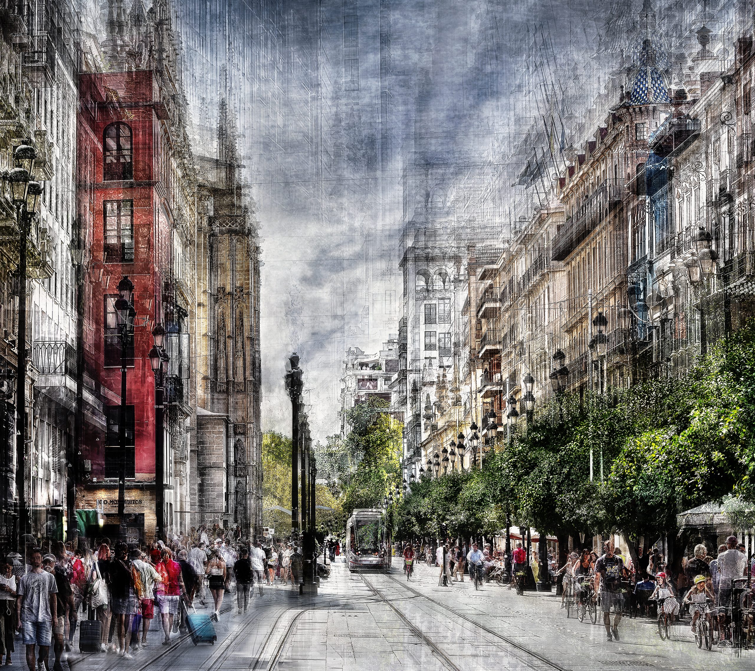 Esta calle de Sevilla  en una versión onírica interpretada y atrapada  por mi memoria emocional  , posteriormente  reflejada en  fotografía para siempre. Una vez más la Arquitectura permitiendo encuentros  y diseñando destinos