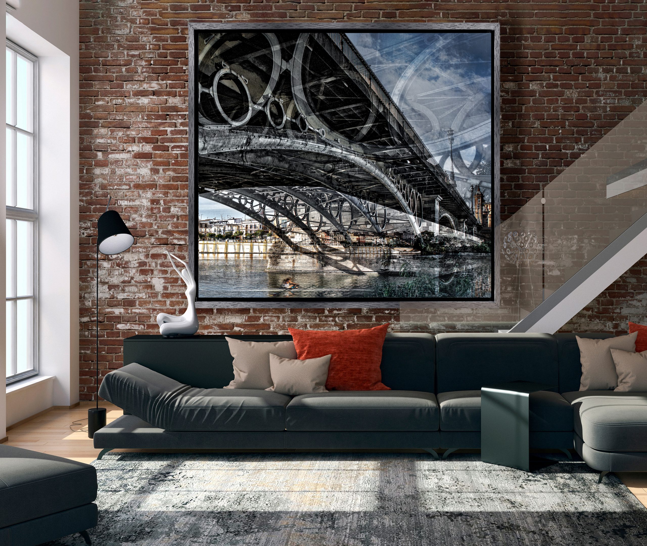 Intenté reflejar mi memoria emocional vivida en sueños de aquel momento de pasar bajo este majestuoso puente de acero.