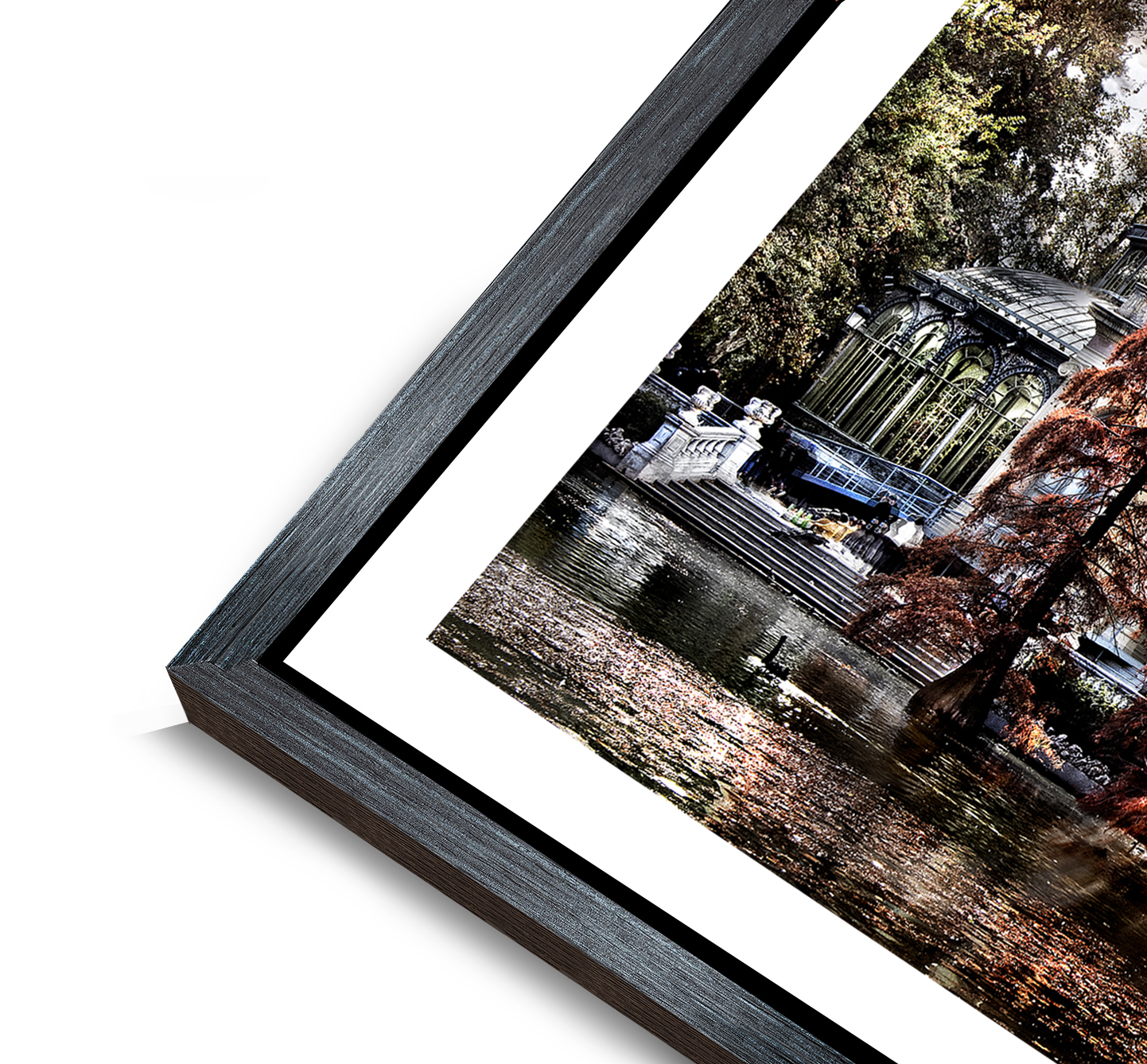| ACABADOS | Copia impresa Fine Art, Metacrilato con bastidor trasero, Caja Americana marco negro, Caja Americana marco mansonia, Caja Americana marco grafito |